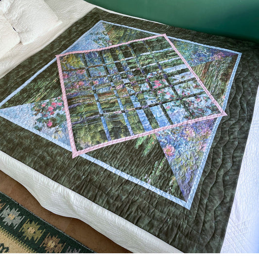 - kits de patchwork à réaliser à partir d'oeuvres d'art emblématiques, comme le quilt Monet fleuri de nymphéas et d'agapanthes.