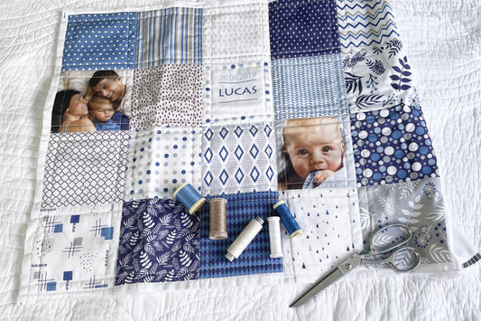Personalize our fabrics and kits and your textile creations become absolutely unique and singular! Add the name of a child, text or photos to the pattern you like, we print your unique and singular kit for you!