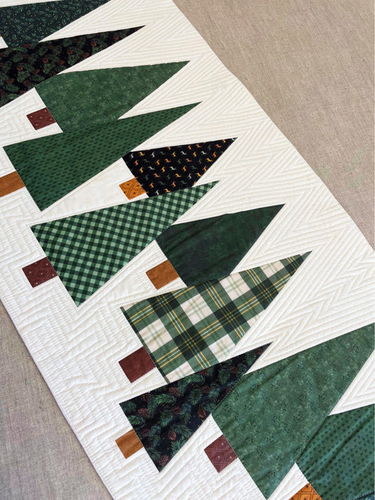 Kit de quilting – Chemin de table patchwork de Noël Sapins verts