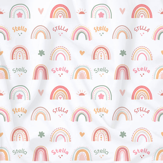 Tissu enfant fille motif arc-en-ciel personnalisé du prénom coton bio