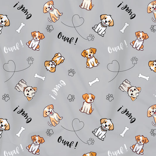 Tissu imprimé chiens personnalisé de nom, prénom ou texte