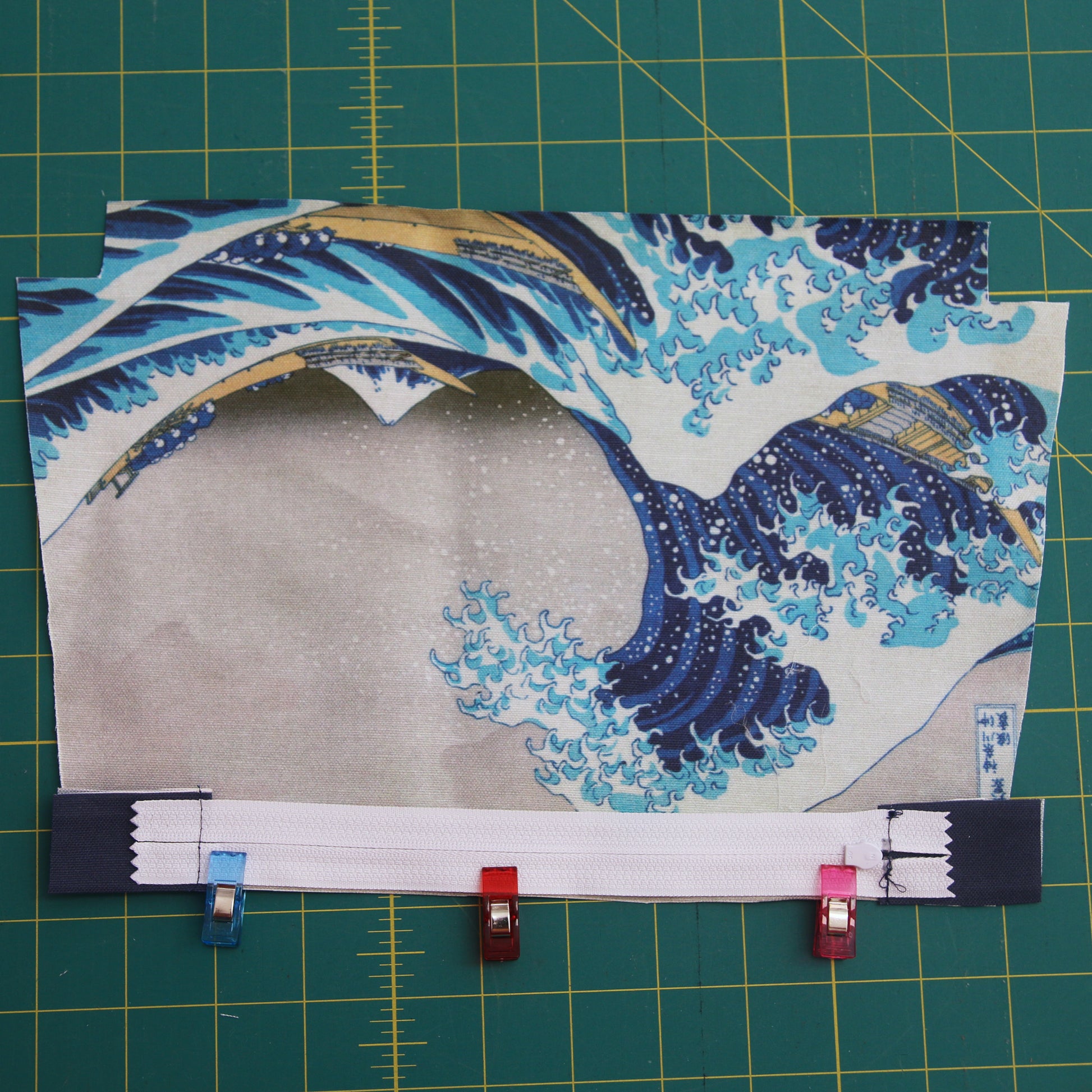Kit couture pochette zippée imprimée La Grande Vague de Hokusai