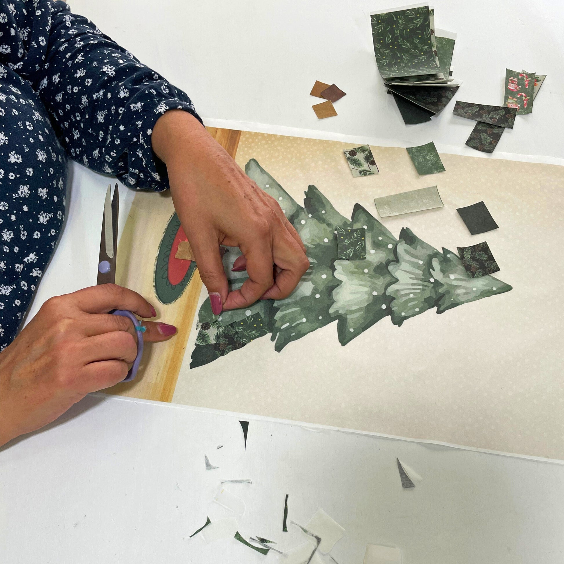 Kit patchwork appliqué Sapin Joyeux Noël collage en tissu débutants